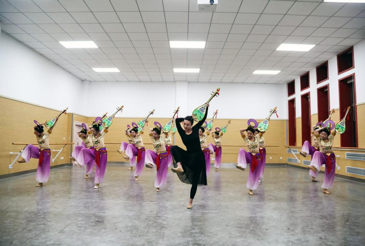 兰州文理学院深耕敦煌文化传承与敦煌舞人才培养工程,依托“敦煌舞人才培养体系研究院”、“敦煌舞舞台艺术实践中心”科研平台和“文旅部非遗传承人群研培基地”项目,努力践行“知行合一,学以致用”育人理念,将敦煌文化从石窟壁画引入课堂教学、融入实践,实现敦煌舞教学的“创造性转化、创新性发展”,以“(教)研-学(习)-践(实)”紧密结合, 围绕“筑基传韵,创启新篇”工作思路,系统化开展敦煌舞人才培养的完整闭环。