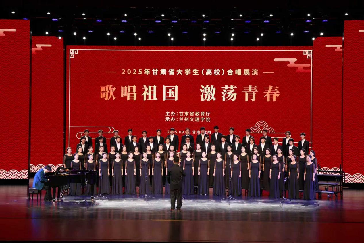 在赛事荣誉方面,合唱团成果丰硕:由张世成老师作词作曲、李赫老师配器并伴奏、李志鹏老师指挥及其他老师领唱的原创四部混声合唱《百年党史话党恩》,先后在2022年甘肃省总工会“网聚职工正能量 争做甘肃好网民”主题活动中获三等奖,在2023年甘肃省教育厅“红色基因传承行动教育活动”中获二等奖;在2025年甘肃省教育厅主办的大学生合唱艺术展演比赛中,由朱瑾老师排练、李志鹏老师指挥、续萍老师与景璟老师伴奏的《怒吼吧,黄河》《保卫黄河》荣获二等奖。