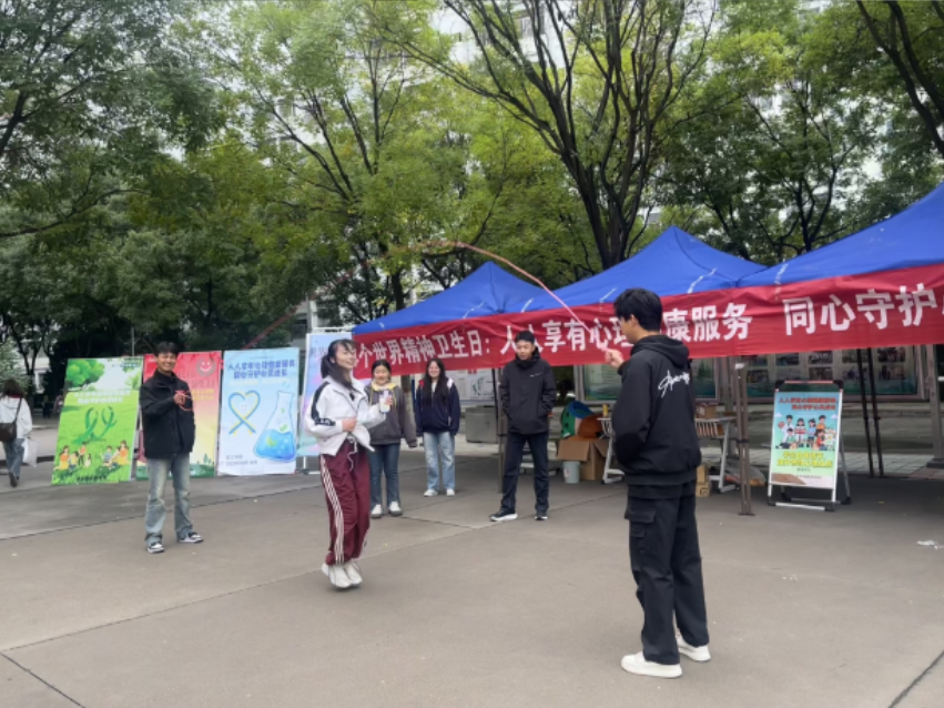 10月10日,学校在思源楼前小广场举办以 “人人享有心理健康服务,同心守护心灵成长” 为主题的 “10.10世界精神卫生日” 系列活动。音乐舞蹈学院组织学生积极参与,学院精心准备了主题展板,生动展示心理健康知识与学院心理健康工作成果。同时,学院还设置了趣味互动小游戏,吸引了众多学生驻足参与。在轻松愉快的氛围中,学生们不仅增进了彼此间的交流,更在游戏互动中提升了自我认知能力与团队协作意识。