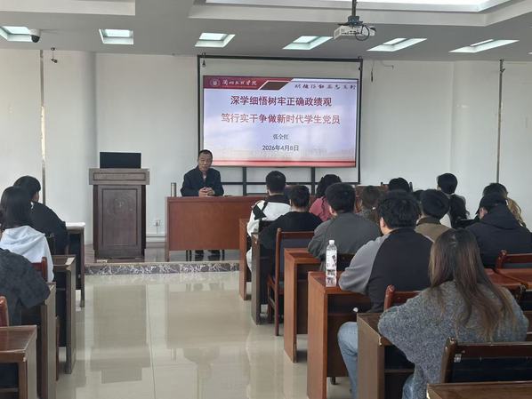 为深入学习习近平关于树立和践行正确政绩观重要论述,引导学生党员深刻理解正确政绩观的丰富内涵与实践要求,激励青年学子以实干担当践行初心使命,4月8日,学院学生党支部开展“深学细悟树牢正确政绩观 笃行实干争做新时代学生党员”专题党课,由学院党总支书记主讲,全体学生党员、入党积极分子、团员代表参加。
