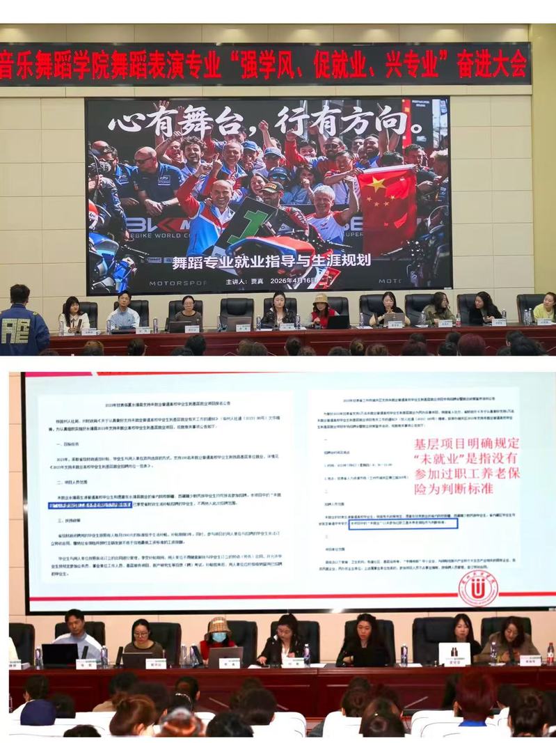 为深入落实立德树人根本任务,持续夯实优良学风建设根基,全面提升舞蹈表演专业人才培养质量,精准引导学生明晰学业发展、考研深造、就业创业与实践成长路径,在学院党总支指导下,4月16日下午,音乐舞蹈学院舞蹈表演专业“强学风、促就业、兴专业”奋进大会在学院隆重召开。舞蹈表演专业全体师生齐聚一堂,共话成长、共促发展。